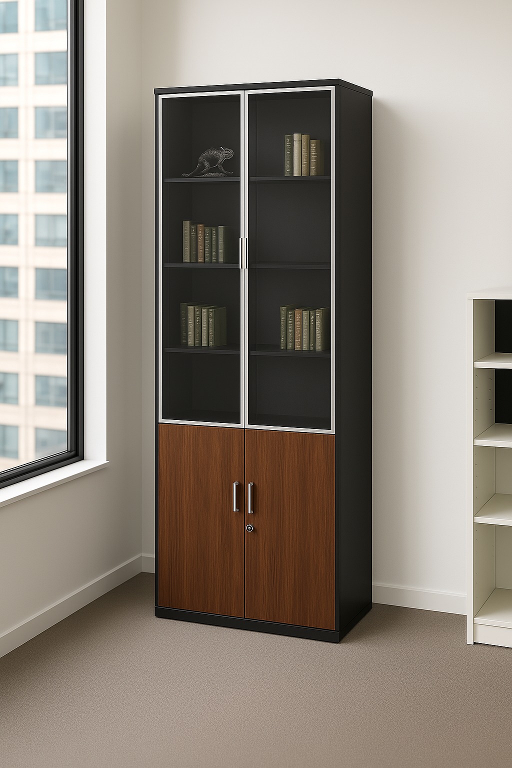 Keep your office organized and stylish with this 2-Door Advanced Office Cabinet, designed with a practical blend of enclosed and display storage. Featuring half glass doors, this cabinet allows you to showcase important documents, books, or decor on the upper shelves while keeping other essentials securely stored behind solid panels. Crafted from durable, high-quality materials, it’s perfect for executive offices, boardrooms, and workspaces that demand both functionality and a touch of elegance.