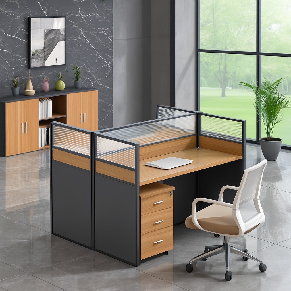 This 2-way computer desk creates the perfect solution for office, workshop, home and apartment. It can be served as computer table, workstation desk, study table, training table or gaming desk. Featuring a elegant wood grain with blue and grey frame, this workstation effortlessly blends with any furnishings in modern style. Expands the storage and capabilities of the workspace with this two person desk, makes your working more effectively. This desktop can easily accommodate your laptop, PC, keyboard, files, desk accessories. Each side features three shelves for storage or decorate your desk, reduce tabletop clutter and add enough space for under-desk storage and organization. It can hold host stand, books, document, keeping your essentials close at hand, while leaving a plenty of surface space for working area.