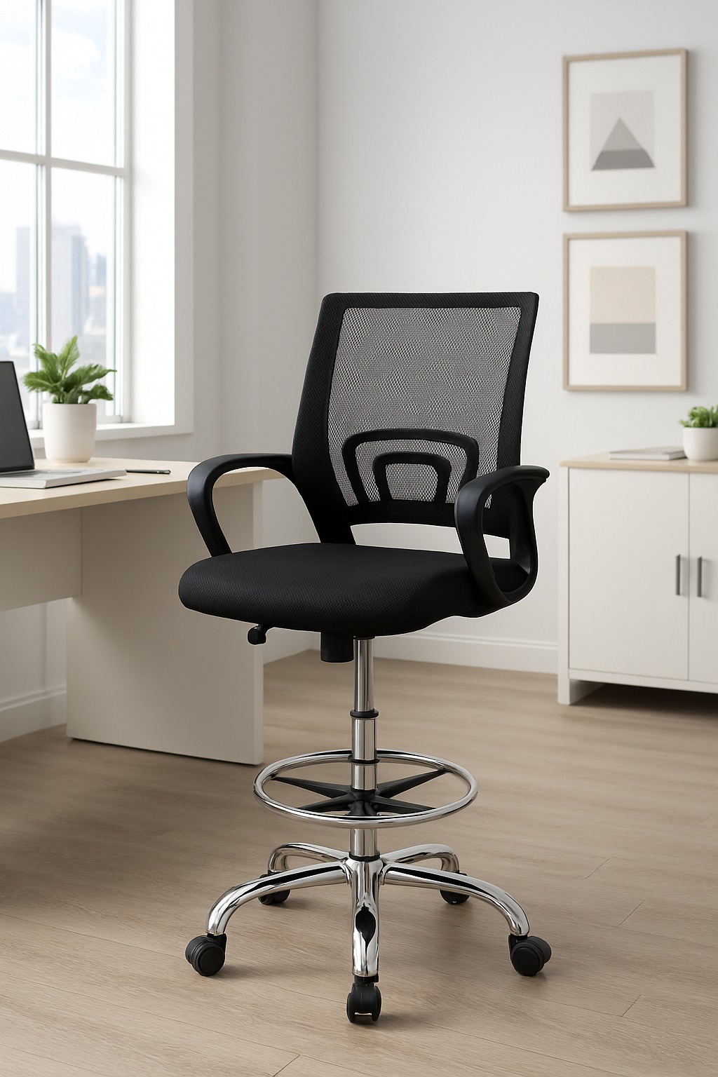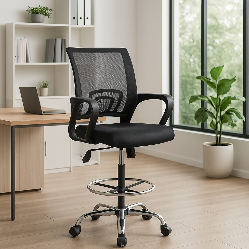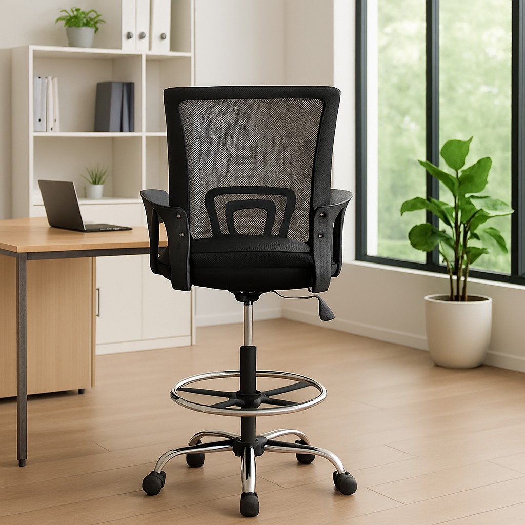 Black Mesh Counter Seat – Ergonomic Style for Modern Workspaces