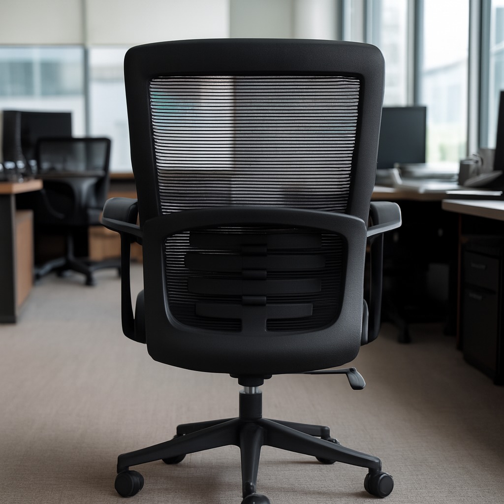 Work comfortably and efficiently with this modern ergonomic chair designed for flexibility and support. Its breathable mesh backrest promotes airflow to keep you cool, while the 360° swivel base allows easy movement around your workspace. The adjustable height and cushioned seat provide personalized comfort, making it ideal for long hours at the desk.