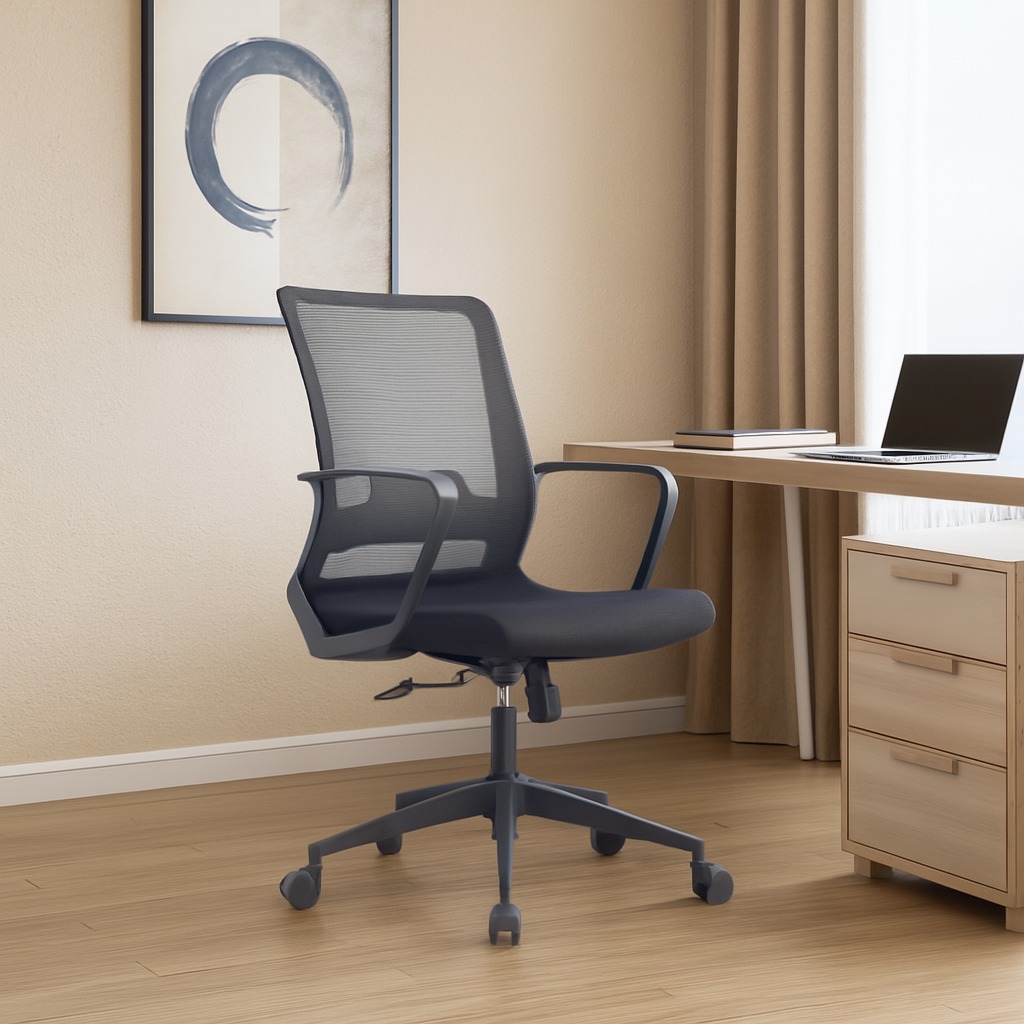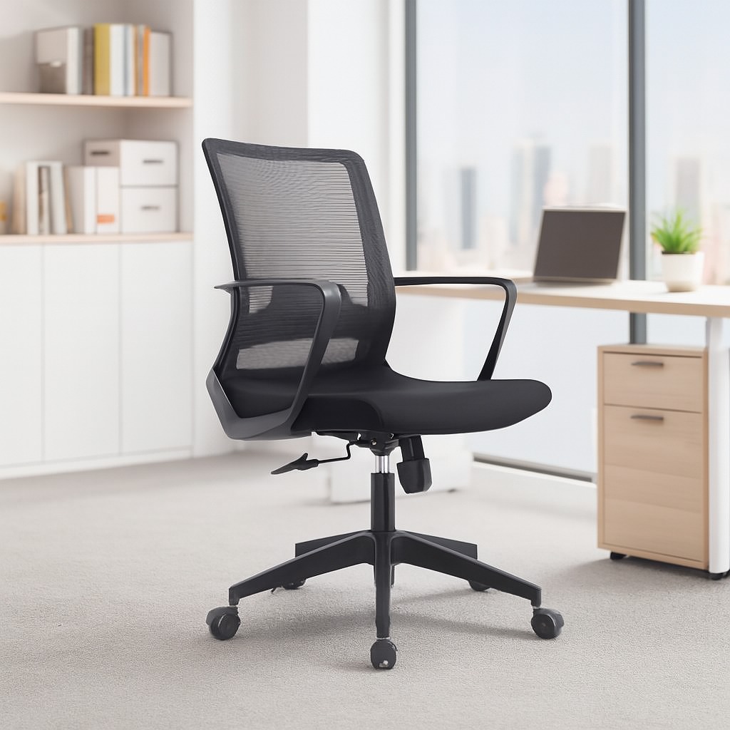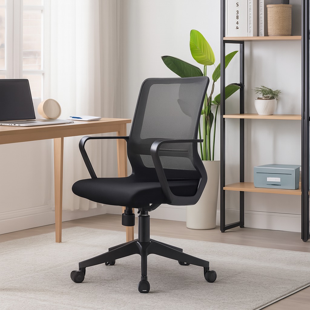 Work in comfort and confidence with this high-performance ergonomic chair built for modern workspaces. It features a breathable mesh backrest that enhances airflow, adjustable height and tilt controls for personalized comfort, and a cushioned seat designed for long hours of sitting. The sleek design and durable build make it a perfect fit for both executive and task-oriented environments.