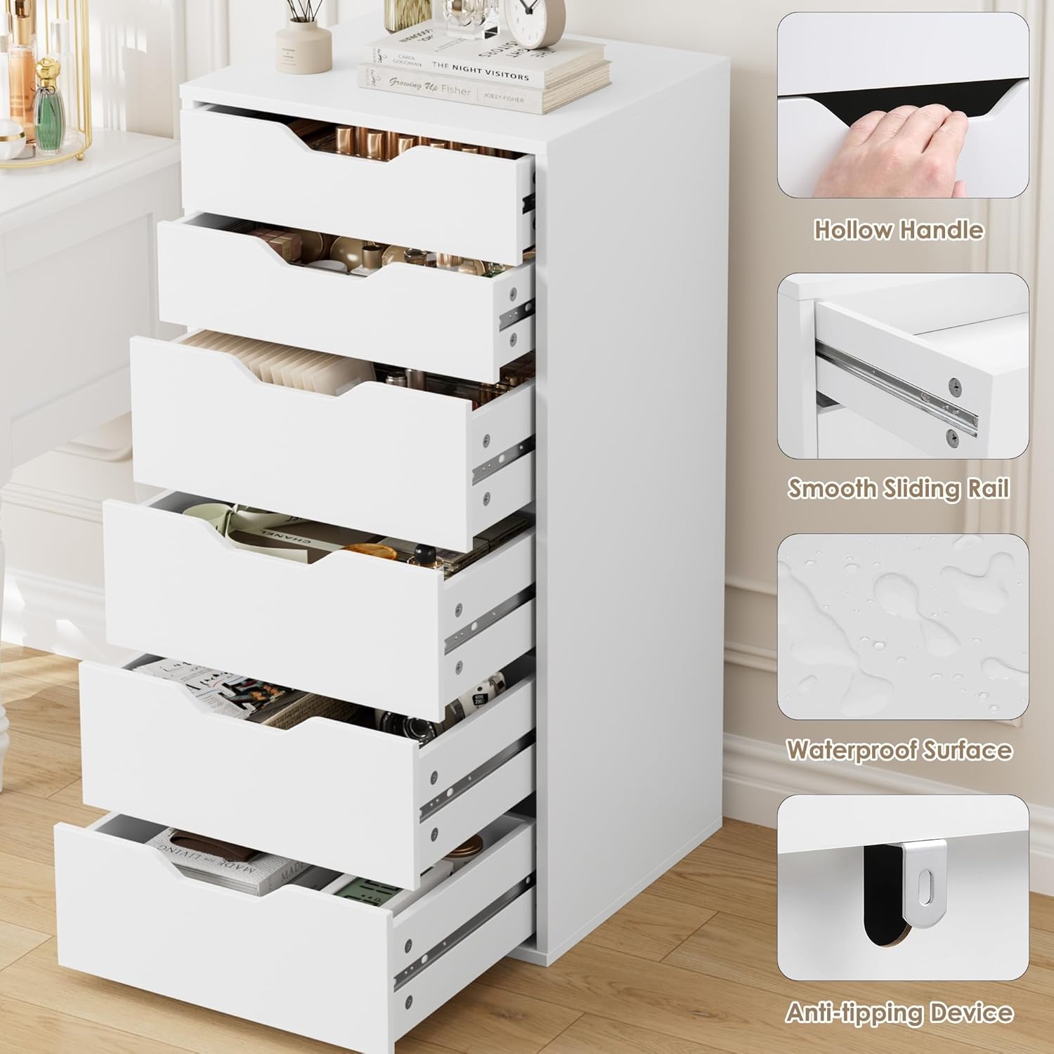 - Six Spacious Drawers – Provides organized storage for documents and supplies.