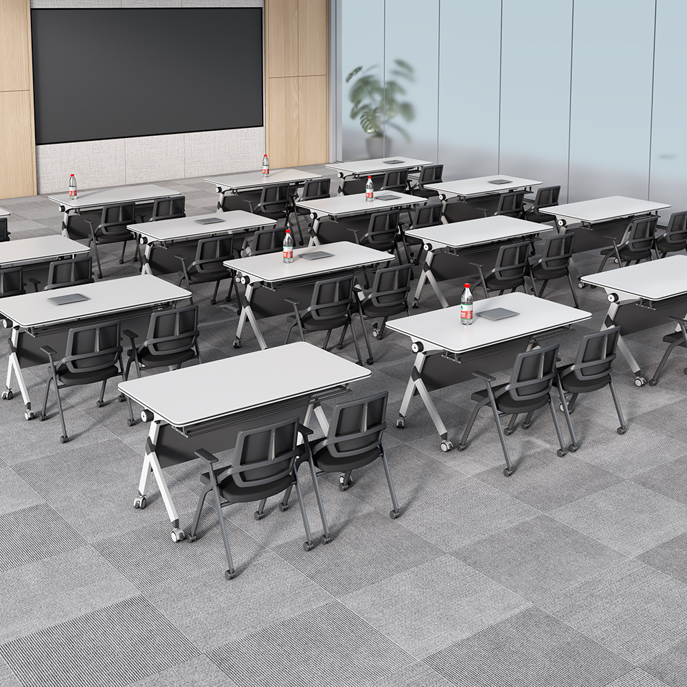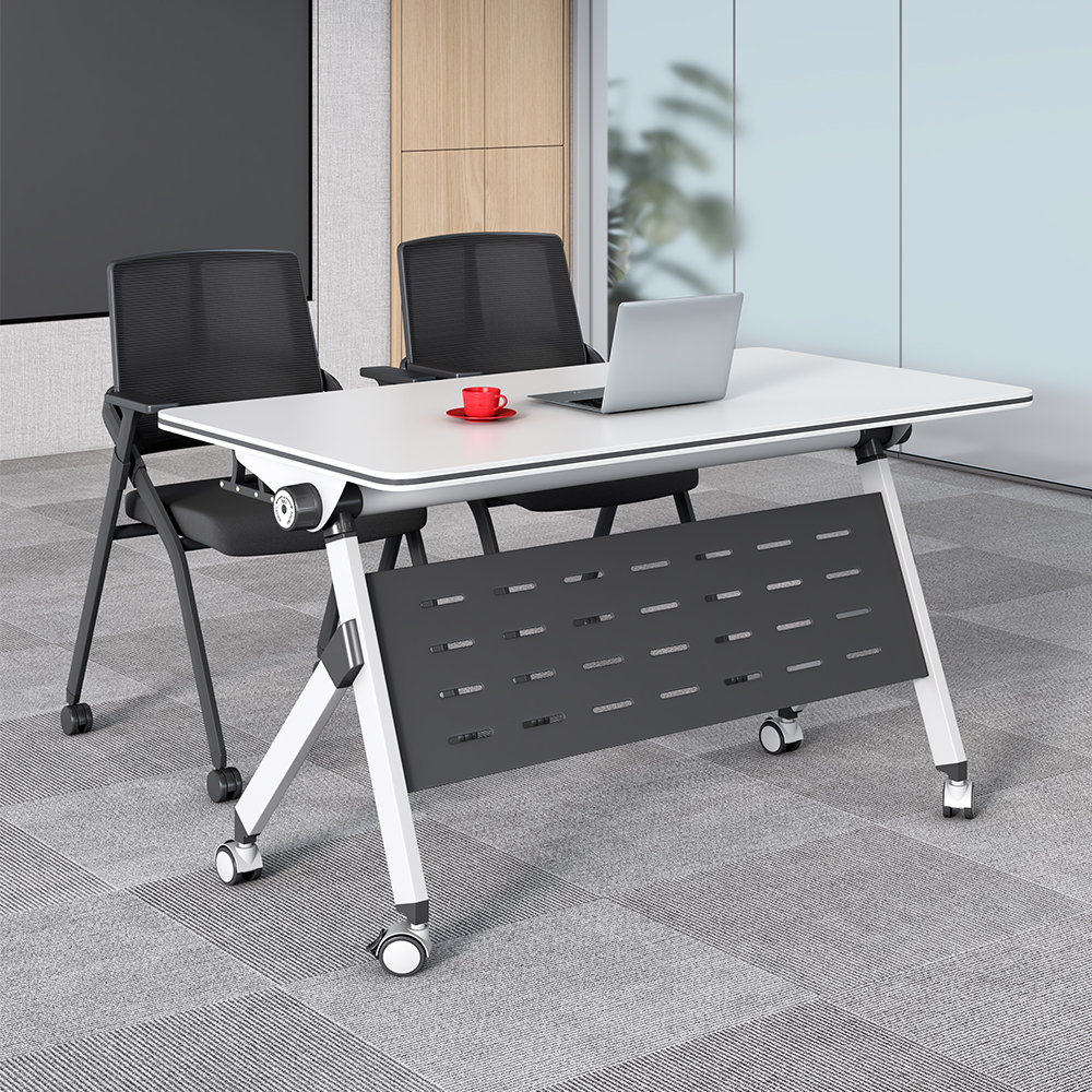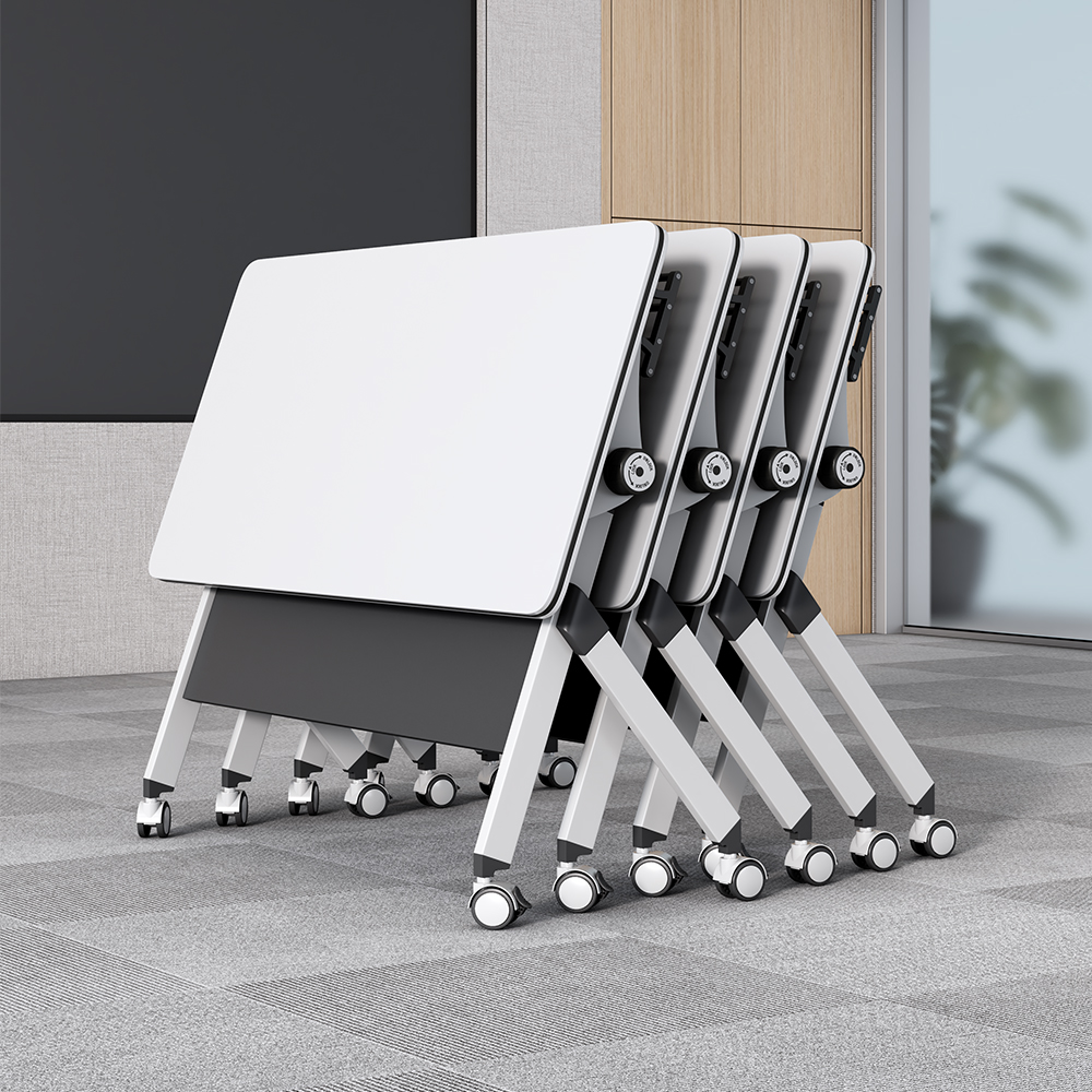 A foldable office table is a space-saving, portable, and versatile piece of furniture designed for modern workspaces. It typically features a collapsible or flip-top design that allows the table to be folded flat for easy storage or transportation. Many models also include lockable casters (wheels) for mobility, making them ideal for dynamic office environments where layouts change frequently.