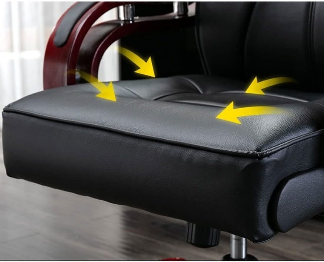 Command comfort and style with this High-Back Executive Office Seat, crafted for professionals who appreciate both luxury and functionality. Upholstered in premium PU leather, this chair features a smooth reclining mechanism, height adjustment, and supportive padding to enhance your seating experience throughout long workdays. The armrests are elegantly finished in mahogany-toned wood and topped with plush padding for added comfort and sophistication. A perfect blend of executive presence and ergonomic design, this chair is ideal for boardrooms, executive suites, or refined home offices.