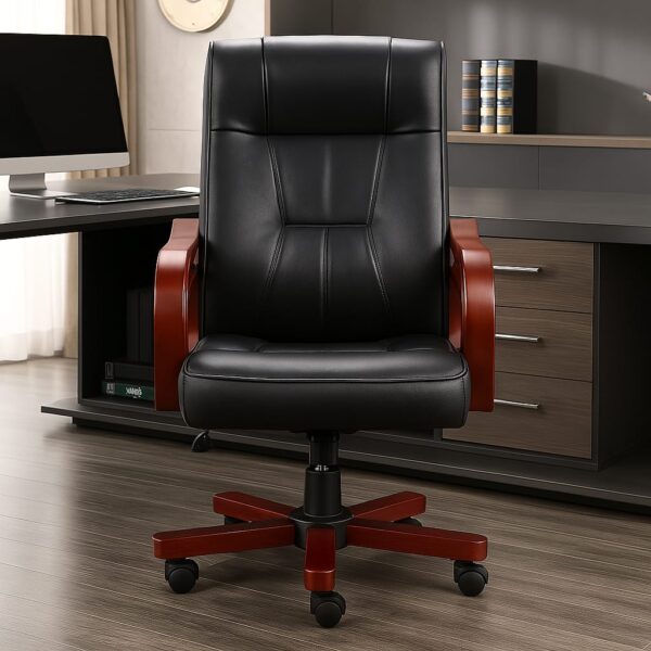 Upgrade your workspace with the luxurious comfort of our High Back Executive Office Seat. Designed for professionals who value both style and support, this premium office chair combines ergonomic functionality with an executive aesthetic. Featuring a high, contoured backrest, this seat provides excellent lumbar and upper back support, helping to reduce fatigue during long working hours. The plush cushioned seat and backrest are upholstered in high-quality leather (or fabric, if applicable), offering a soft yet durable finish. An adjustable height mechanism, tilt function, and 360-degree swivel deliver personalized comfort and flexibility, while the sturdy metallic base and smooth-rolling caster wheels ensure easy mobility and stability.