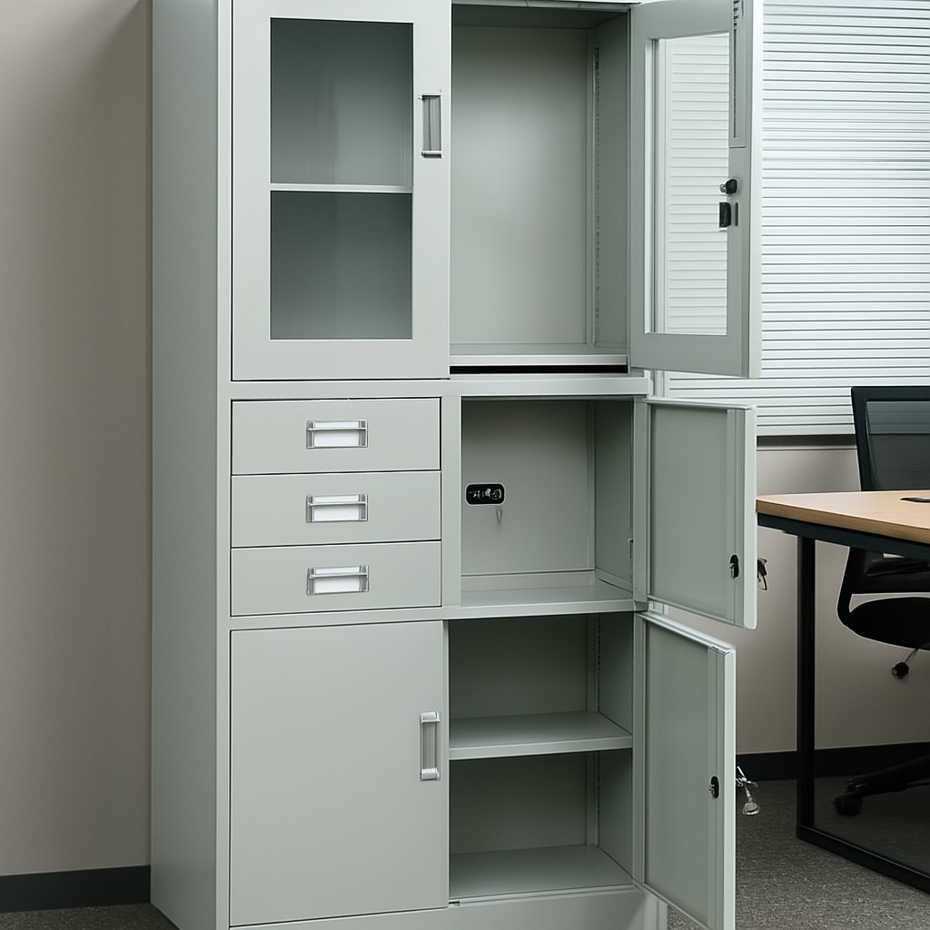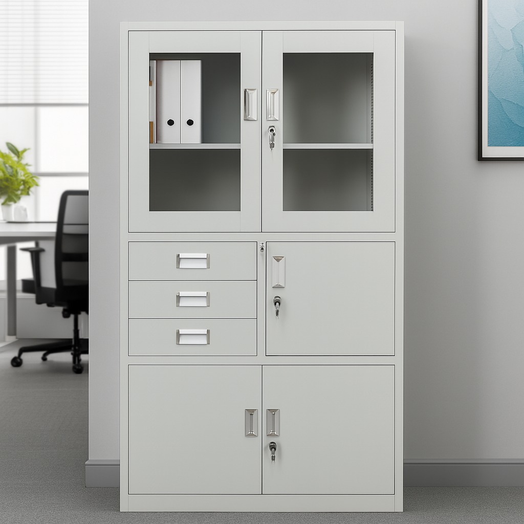 Keep your documents organized and secure with our Metallic Filing Office Cabinet With Safe. Designed for both functionality and durability, this cabinet is the perfect solution for offices, schools, and institutions that require reliable storage and added security. Crafted from high-quality metal, it features multiple spacious drawers with smooth sliding rails, ensuring easy access to your files. The built-in safe provides an extra layer of protection for sensitive documents, valuables, or confidential records. With its sleek, professional design, this cabinet complements any office environment while offering long-lasting performance.