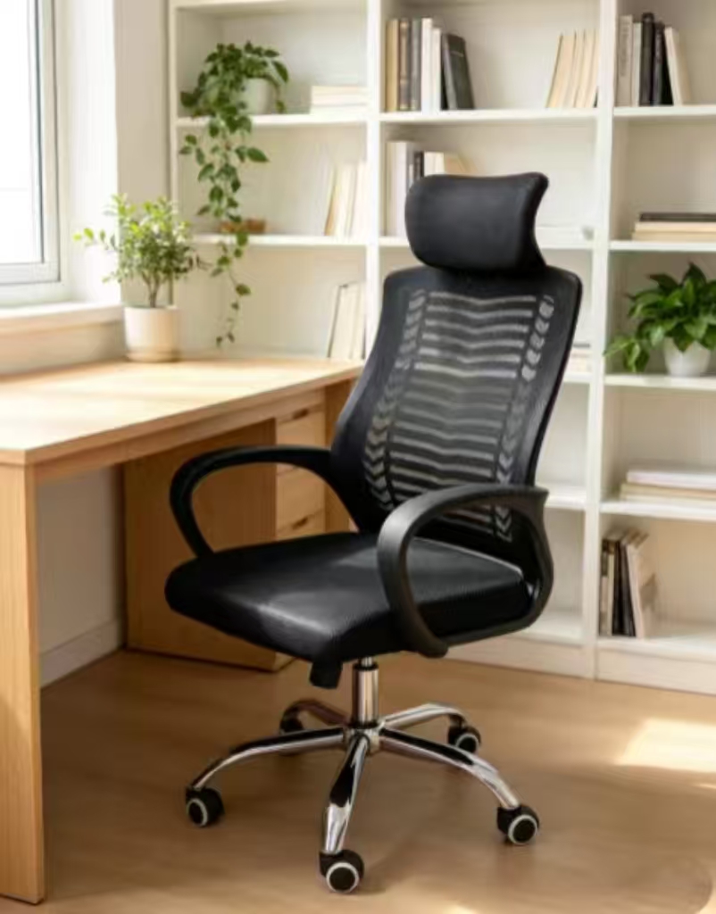 The Headrest Office Seat is designed to deliver superior comfort and support for professionals who spend long hours at their desks. Featuring an adjustable headrest, ergonomic cushioning, and a sleek design, this chair promotes healthy posture while reducing fatigue. Perfect for executive offices, home workspaces, and corporate environments, it combines durability with modern style.