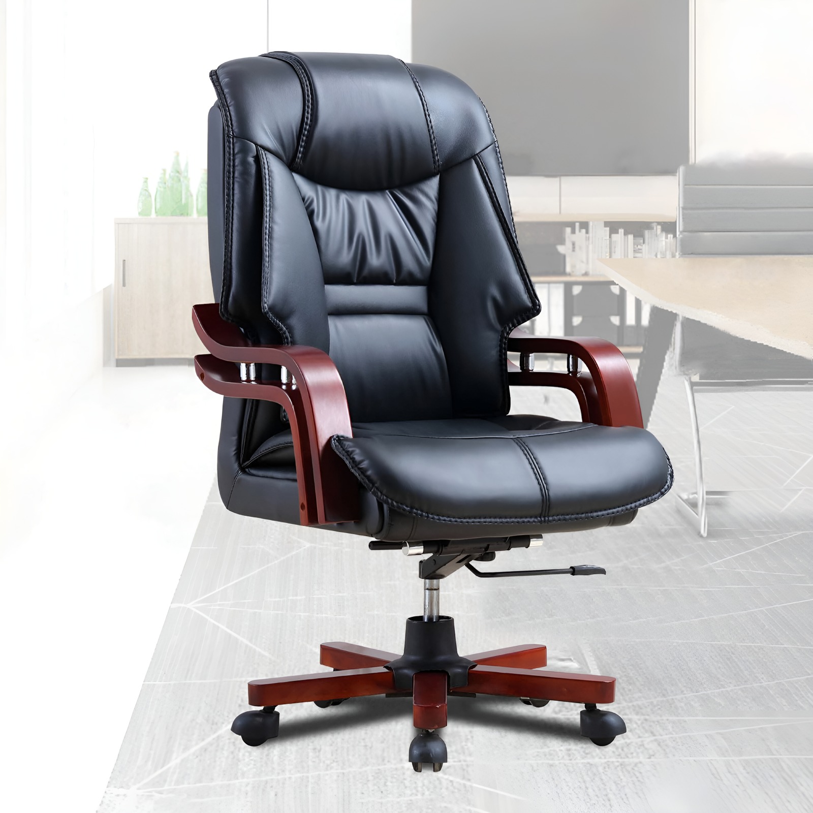 Available in executive-grade leather or premium fabric upholstery