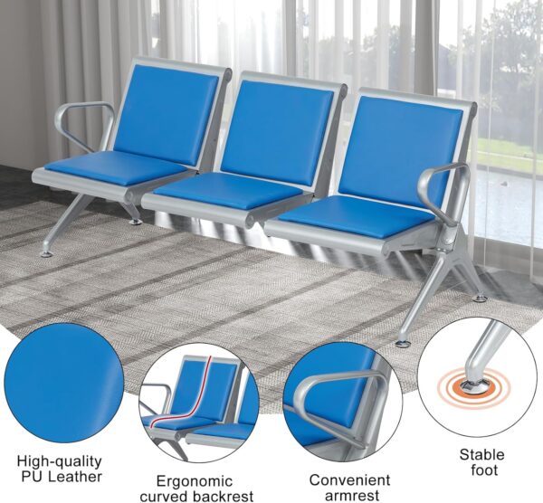Upgrade your waiting area with this sleek and modern 3-seater bench, designed to offer both comfort and durability. Perfect for airport lounges, hospital waiting rooms, and office receptions, this bench features a sturdy metallic frame with a silver finish that complements any professional setting. The vibrant blue padded cushions provide enhanced comfort and a welcoming appearance, while the ergonomically designed seats ensure proper support during extended periods of sitting. With its clean lines and contemporary style, this bench not only serves a functional purpose but also elevates the overall aesthetic of your space. Built to withstand heavy use, it’s easy to clean, low-maintenance, and ideal for high-traffic environments.