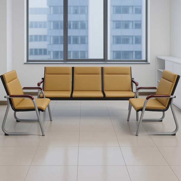 3-link padded waiting bench is suitable for any office waiting space, it is made of pure aluminum metal; strong, hard and rust resistant. It also consists of four supporting metallic legs with circles bottom base to keep it stable. Both the sitting and the back lining side are padded using spongy cushions. This cushions also vary in color; that’s why the 3-link padded waiting bench range in a variety of colors for instance blue, black ets.