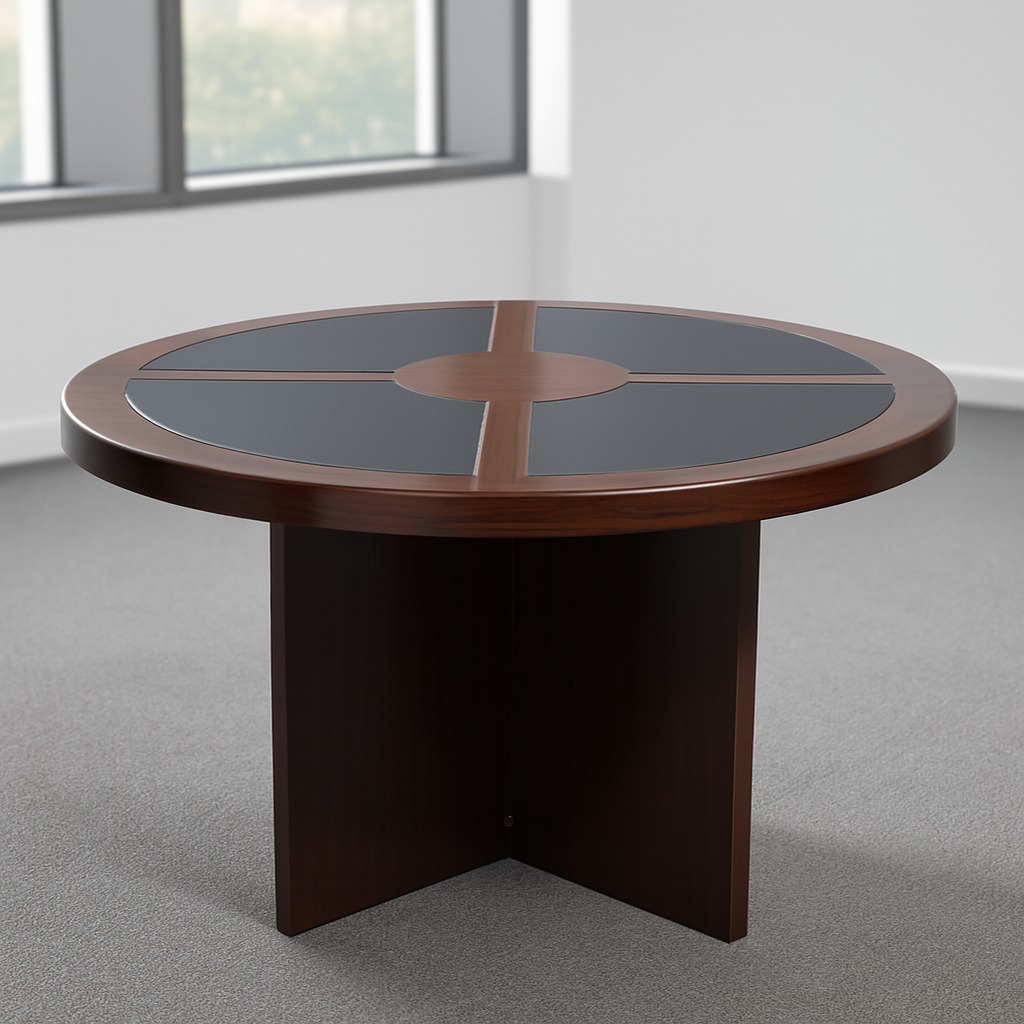 Create an inviting and collaborative meeting environment with our Round 4-Seater Executive Conference Table. Finished in a rich mahogany veneer, this elegant table adds a refined, executive touch to any office or boardroom setting. Its spacious round tabletop comfortably accommodates up to four people, making it perfect for intimate meetings, team discussions, and client conversations. Built with durability in mind, the sturdy design ensures stability and long-lasting use in busy office environments.