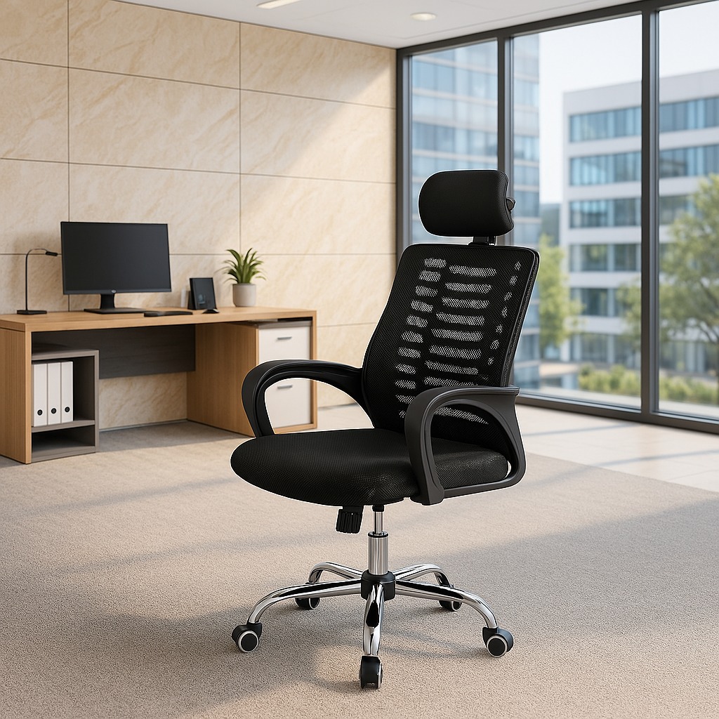 Boost productivity and comfort with this ergonomically designed secretarial office chair. Equipped with a supportive headrest, breathable mesh back, and cushioned seat, it’s tailored for long working hours at the desk. The adjustable height and smooth swivel function ensure flexibility for dynamic office environments.