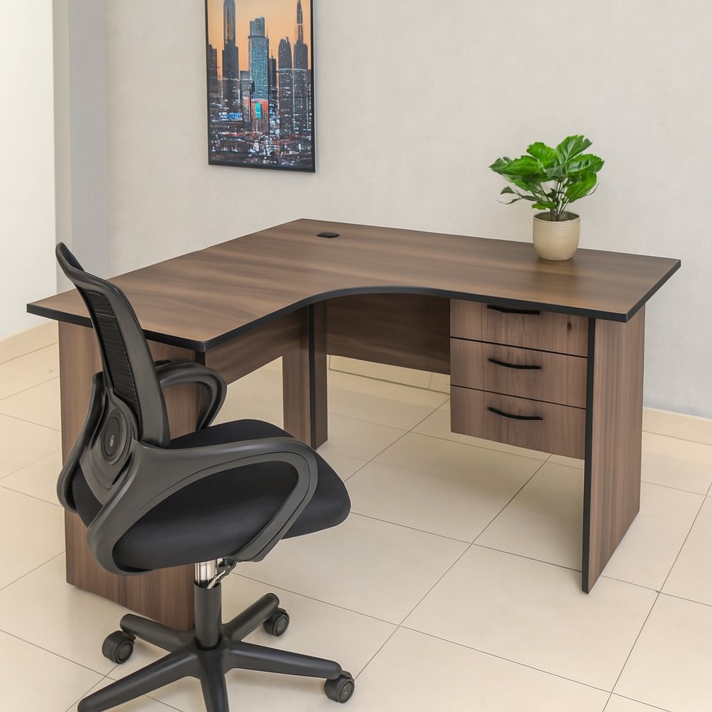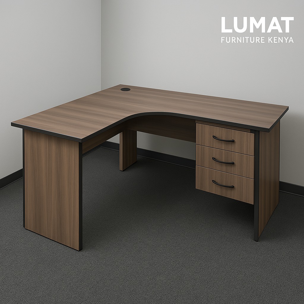 -Local finish giving your office color & style. Our 1.4meters curved/(L-shaped) office desk is made up of quality hardwood local Kenyan wood. Designed to have 3 lockable drawers with a standard width of 1.2meters (120 centimeters). the lower space allows you to blend it with any seat. The desk can be designed in many colors and designs based on your requirement. We also design a variety of sizes to help you purchase furniture that is equally fit for any workspace. For office furniture and home furniture shop with us today. contact our customer care support (+254 717777813) for real time help and clarification on inquiries.